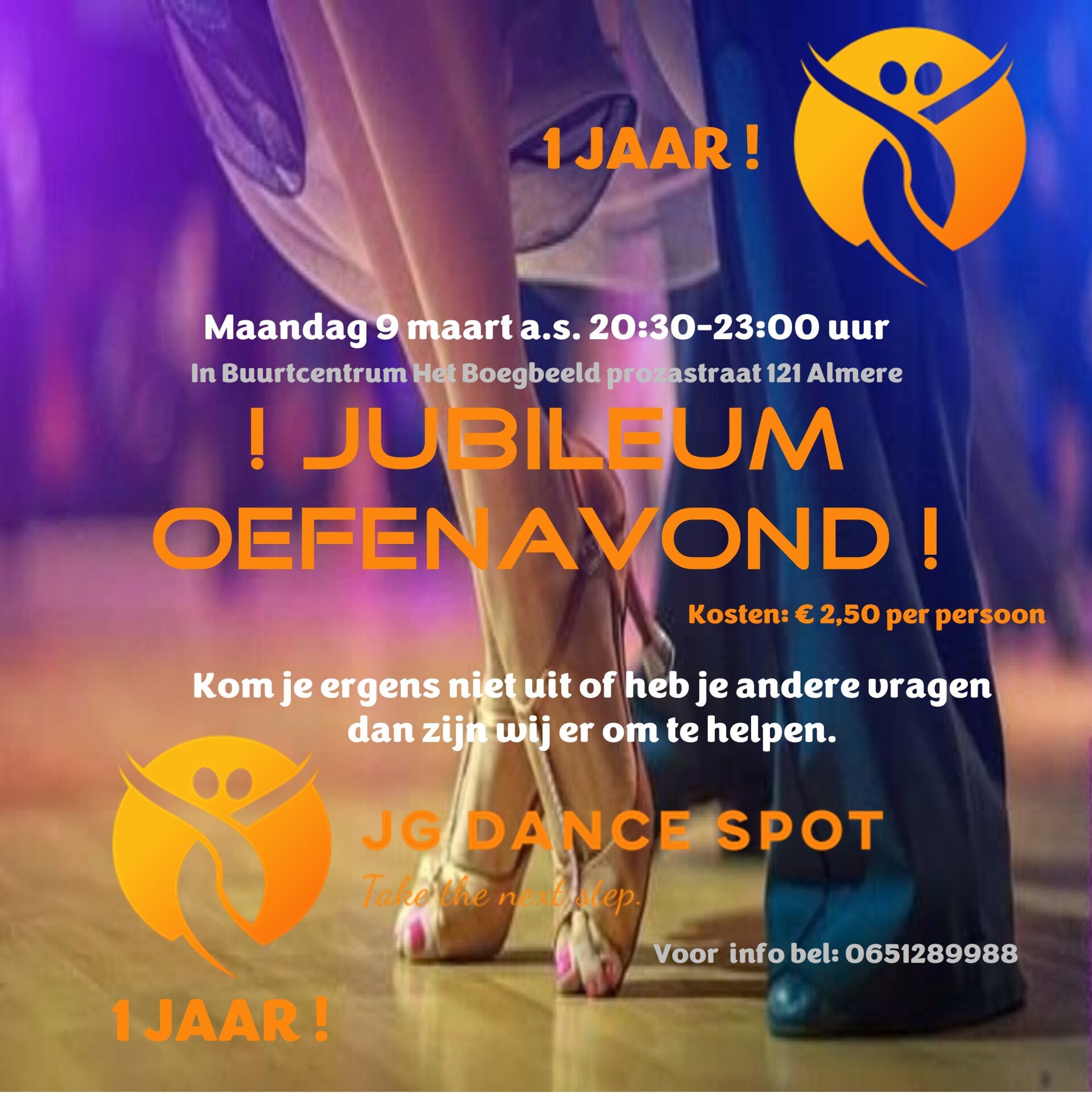 Deze oefenavond staat vast en zeker in het teken van het 1 jarig jubileum van JG-Dancespot.